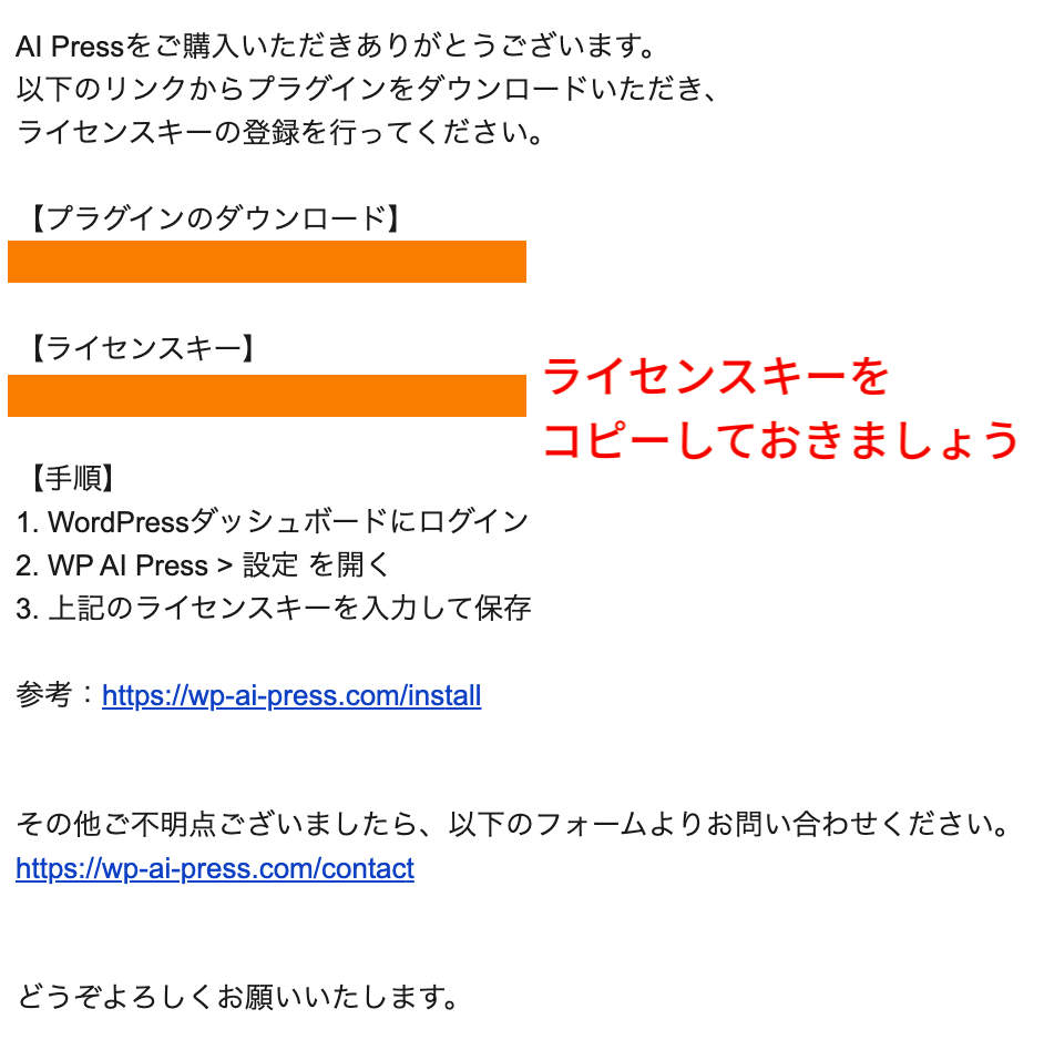 お支払いが完了したらメールが届きますので、メールに記載されたリンクに飛んで、プラグインをダウンロードしてください。
