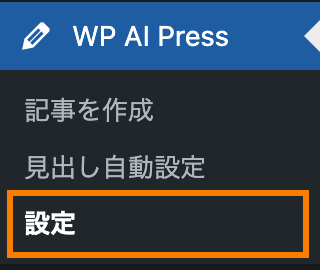 左メニューのAI Press>設定をクリックして、AI Pressの設定画面に飛びます。